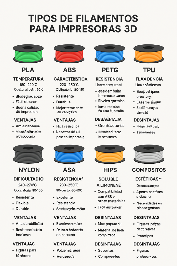 Tipos de Filamentos para Impresoras 3D: Guía Completa 2025